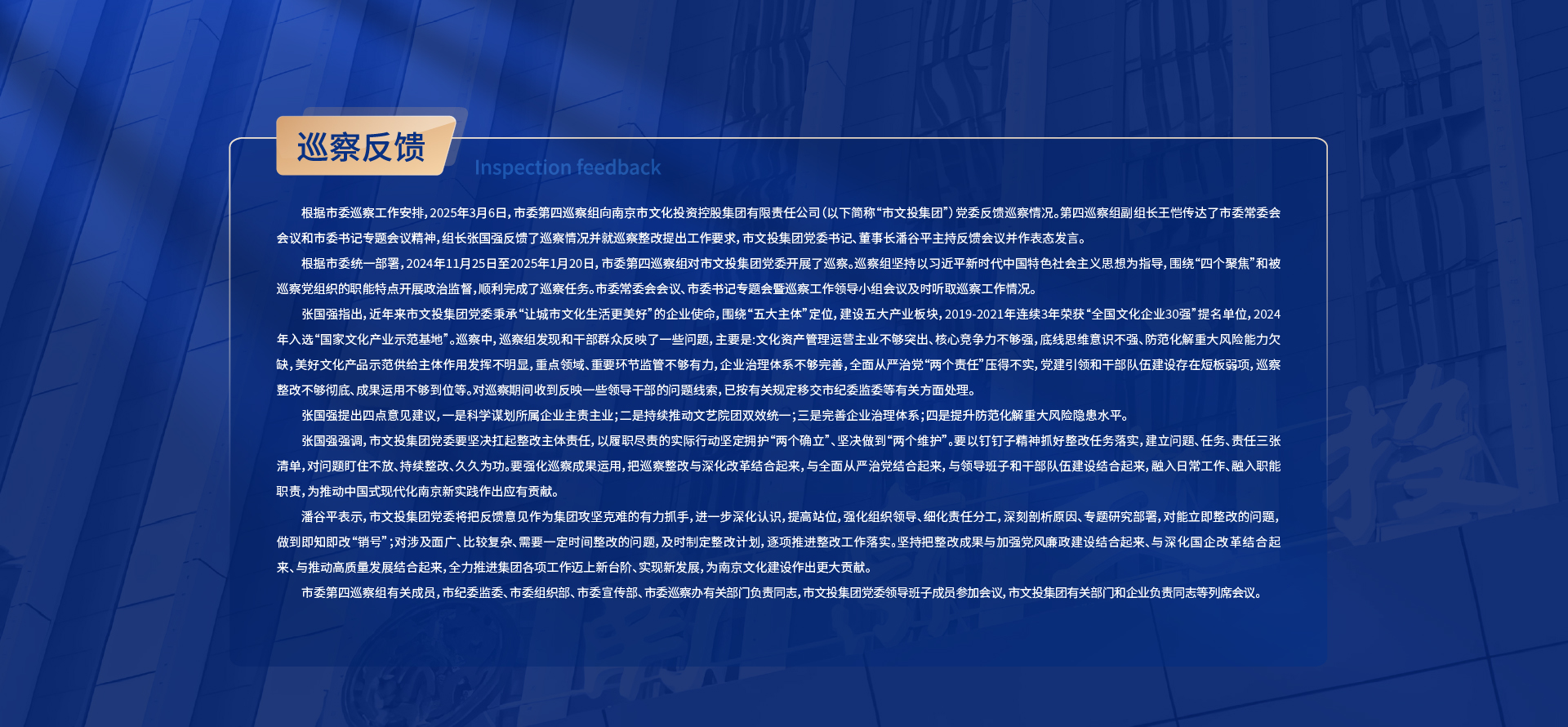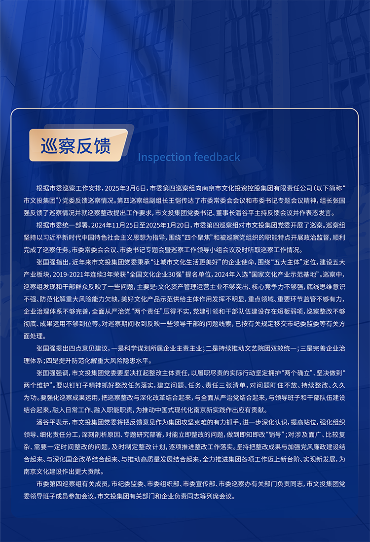 公示公告市委第四巡察組向南京市文化投資控股集團(tuán)有限責(zé)任公司黨委反饋巡察情況